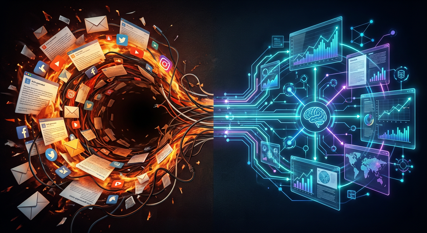 Here's what I think went wrong: the entire AI-for-marketing conversation has been dominated by content generation. Write faster, publish more, produce produce produce. But the part of marketing where AI delivers genuinely transformative value isn't production at all. It's the part that happens before anyone writes a single word.