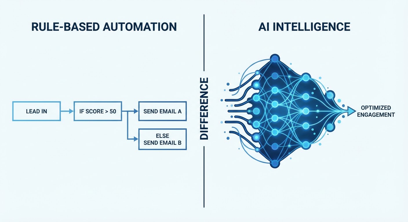 Traditional automation asks: does this lead fit the criteria? AI prospecting asks: should we talk to this person right now, and about what?