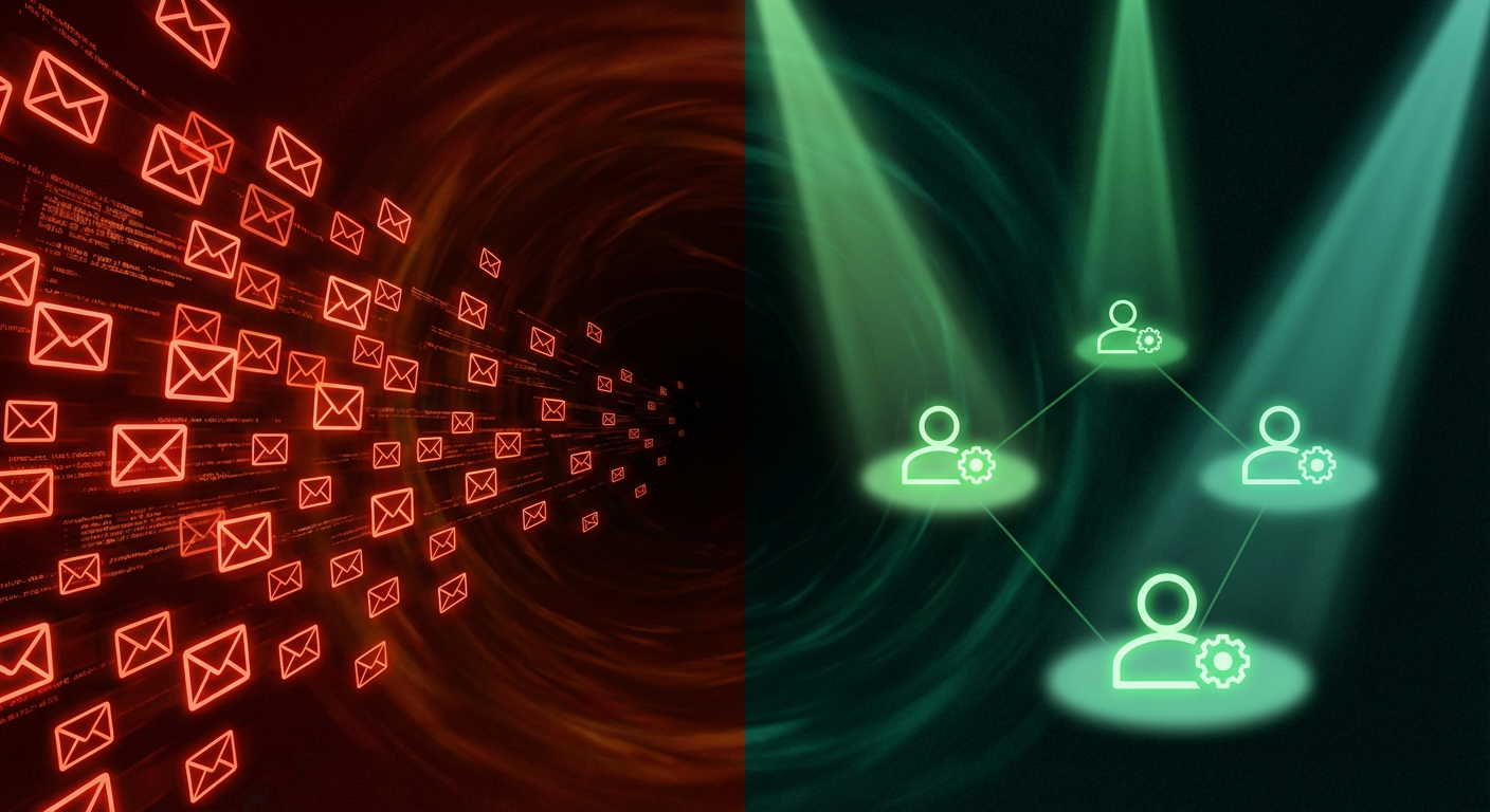 The SDRs know this isn't working. They feel it in their bones every time they send a 500-person sequence and get eight angry "remove me" replies. But they're trapped in a system that measures activity, not relevance. Their managers want to see emails sent, calls made, sequences completed. The metrics incentivize volume. Volume produces noise. And somewhere in that noise, the actual prospects — the 3 out of 1,400 who might have been genuinely interested — get the same generic pitch as everyone else.