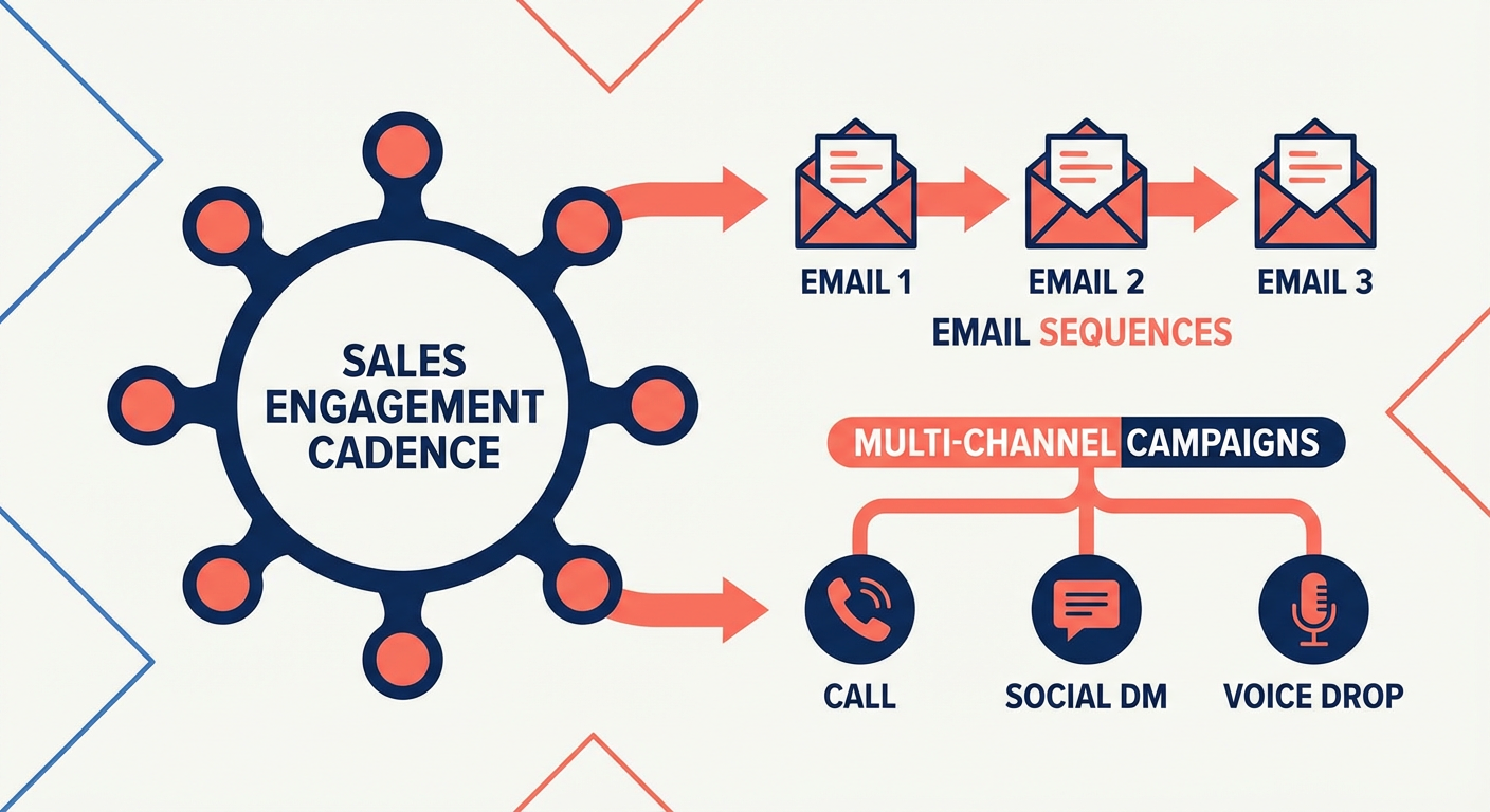 - Email sequences with phone and LinkedIn tasks