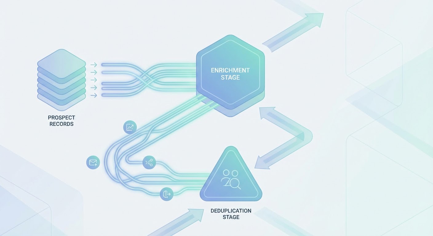 Step 4: Deduplicate and push to CRM. This sounds boring because it is boring. It's also where deals die. I sat in on a pipeline review once where three reps on the same team had all been emailing the CFO at the same company from three different sequences. Nobody had checked HubSpot first. Embarrassing for the team, annoying for the CFO. Automate the dedup and routing so your CRM catches duplicates before they become awkward conversations.