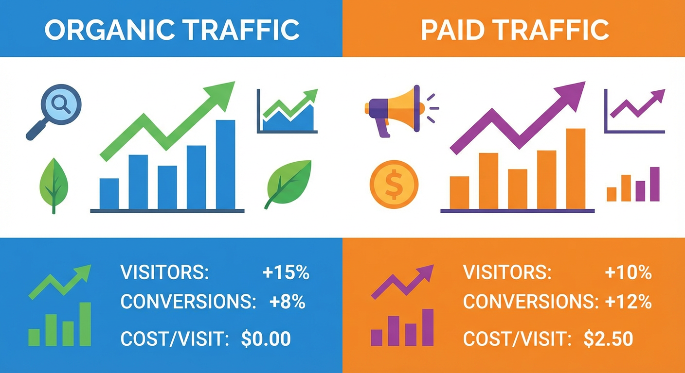 But the ratios and trends hold up well. When SimilarWeb says a competitor doubled traffic in six months, they probably doubled. When it says 55% organic and 25% paid, those proportions track reality even if the raw visit count is off. Treat the absolute numbers as directional, not precise.