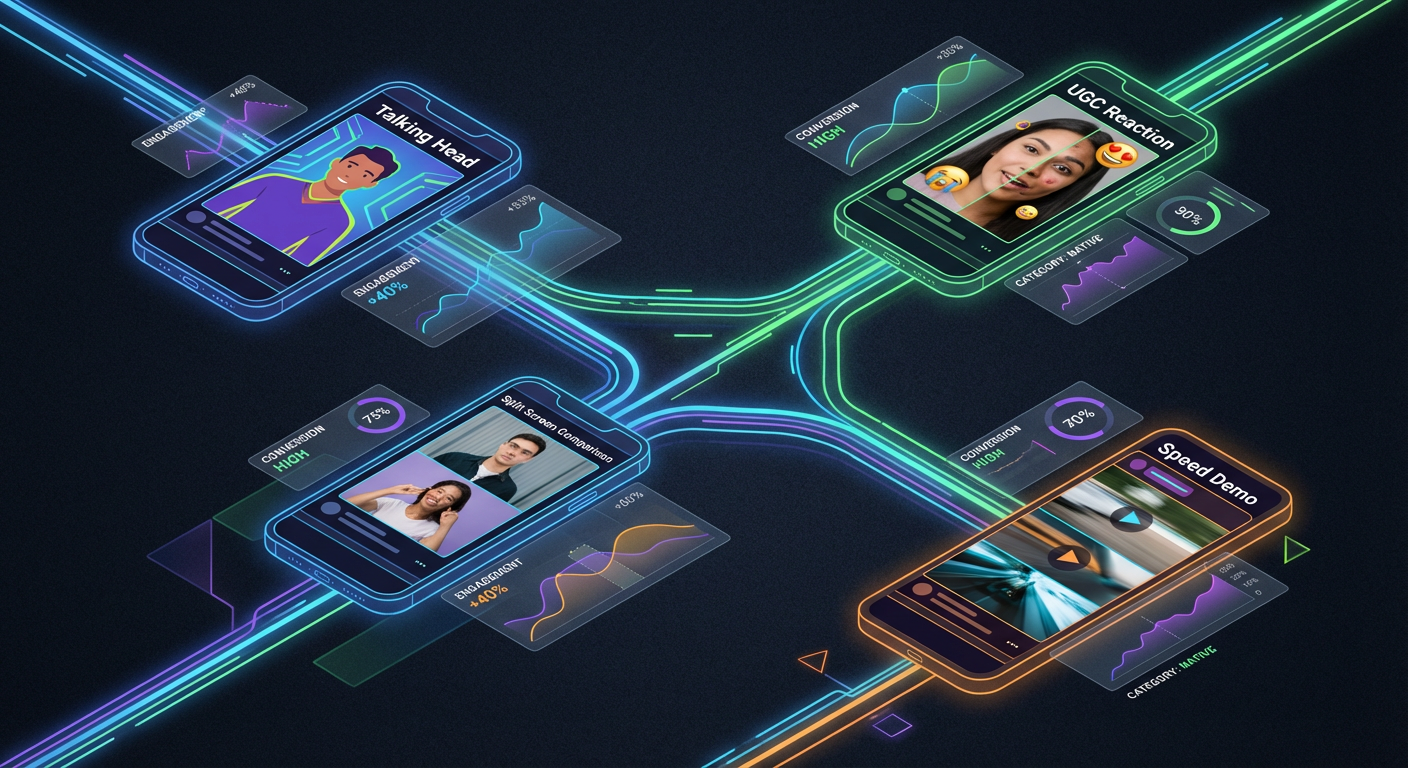 After watching 20, categorize by format. "Talking head with text overlay" is one cluster. "Product demo with voiceover" is another. "UGC reaction," "before-and-after transformation," "green screen explainer." Count instances of each. When 14 of the top 20 use some flavor of talking-head format, the algorithm and your market's audience are both telling you the same thing.
