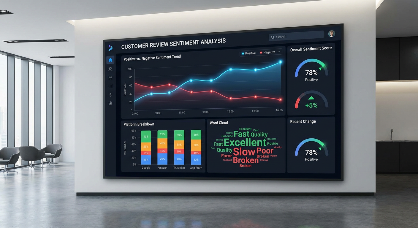 A sentiment analysis agent can process hundreds of reviews and social posts in a single pass and give you a structured breakdown organized by theme and scored by sentiment. Instead of spending 45 minutes reading G2 reviews yourself, you get a report: "here are the five themes from the last 30 days, ranked by frequency, with representative quotes."