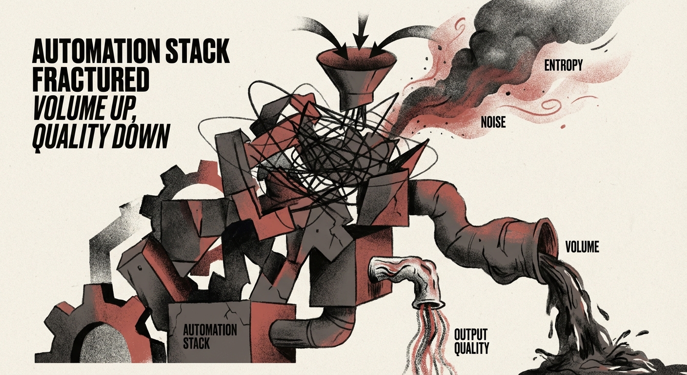It's not true anymore. The response rates prove it. The 2% reply rate that was "normal" three years ago is now 1% or less for many teams. The prospects adapted faster than the tools. They built filters. They learned to recognize the patterns. They stopped opening emails that smelled like sequences. And now the automation stack is in a death spiral: as response rates decline, teams compensate by increasing volume, which further trains prospects to ignore outbound, which further tanks response rates.