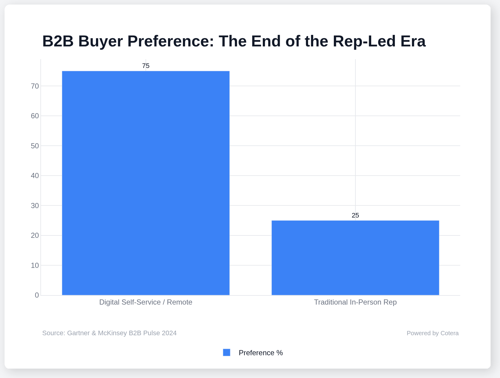 Take another look at the shift in buyer behavior. The traditional sales-led era is dying. 75% of your potential customers want to do the work themselves. They want to self-serve. They want to be in control.