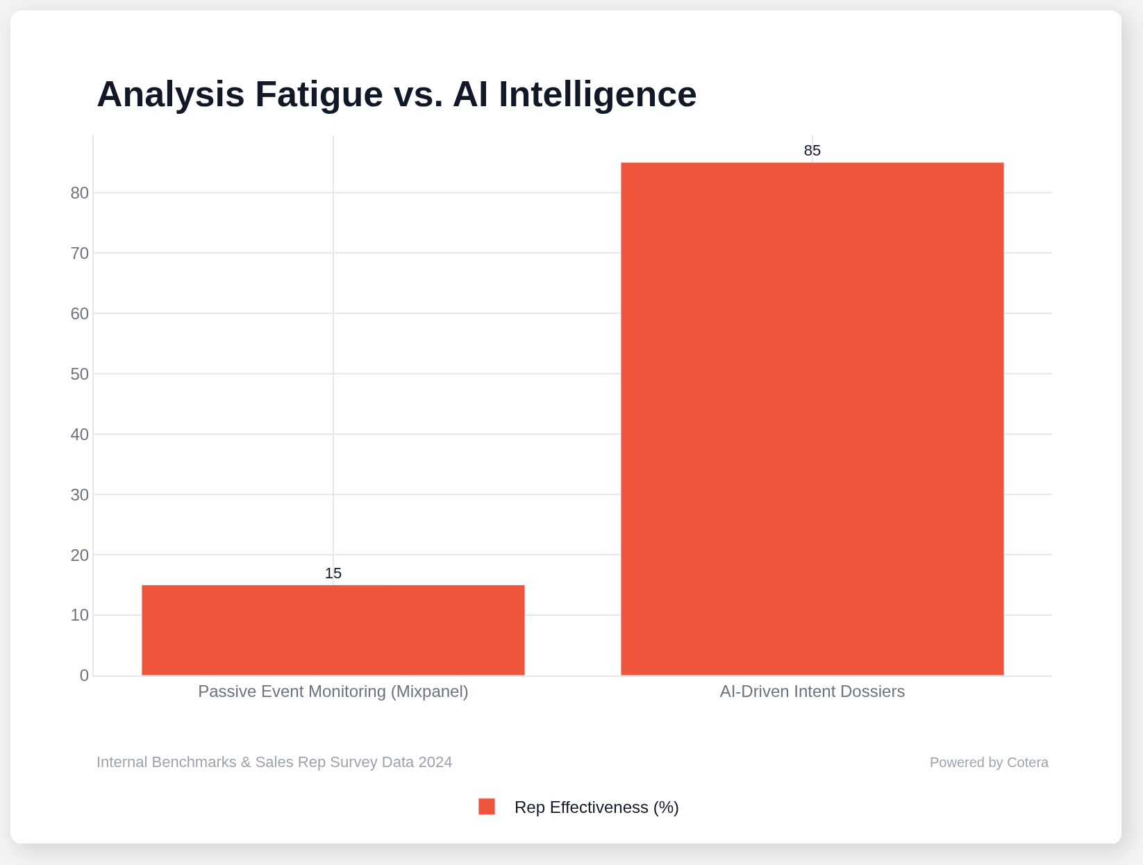 If you're not using an AI agent to build this dossier, you're just making your sales reps do manual labor that an agent can do in three seconds. As the chart below shows, the effectiveness gap between Passive Monitoring and AI Intent Dossiers is massive.