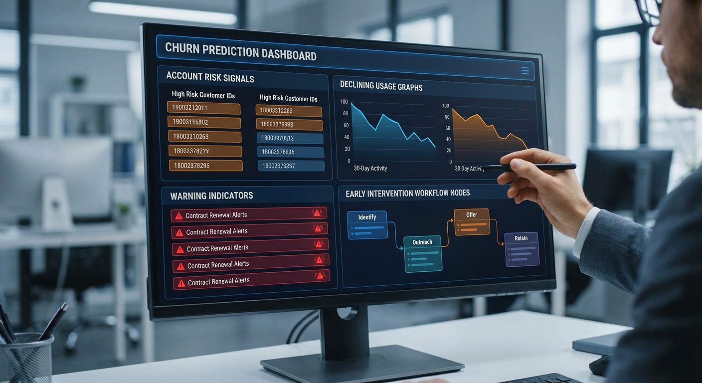 Churn does not happen randomly. It follows patterns. An account starts using the product less. They stop responding to emails. They miss onboarding milestones. Support tickets pile up. The CSM creates tasks that never get resolved. Then one day they cancel.