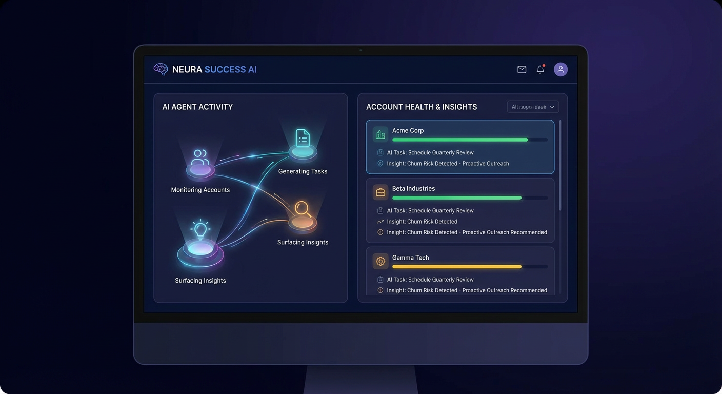 That is the problem with the current generation of CS platforms. They are built for visibility, not execution. You get a color-coded health score. You get an alert when an account goes red. You get a dashboard showing CSM activity and revenue retention. But the platform does not actually do the work. It just tells you what work needs to be done.