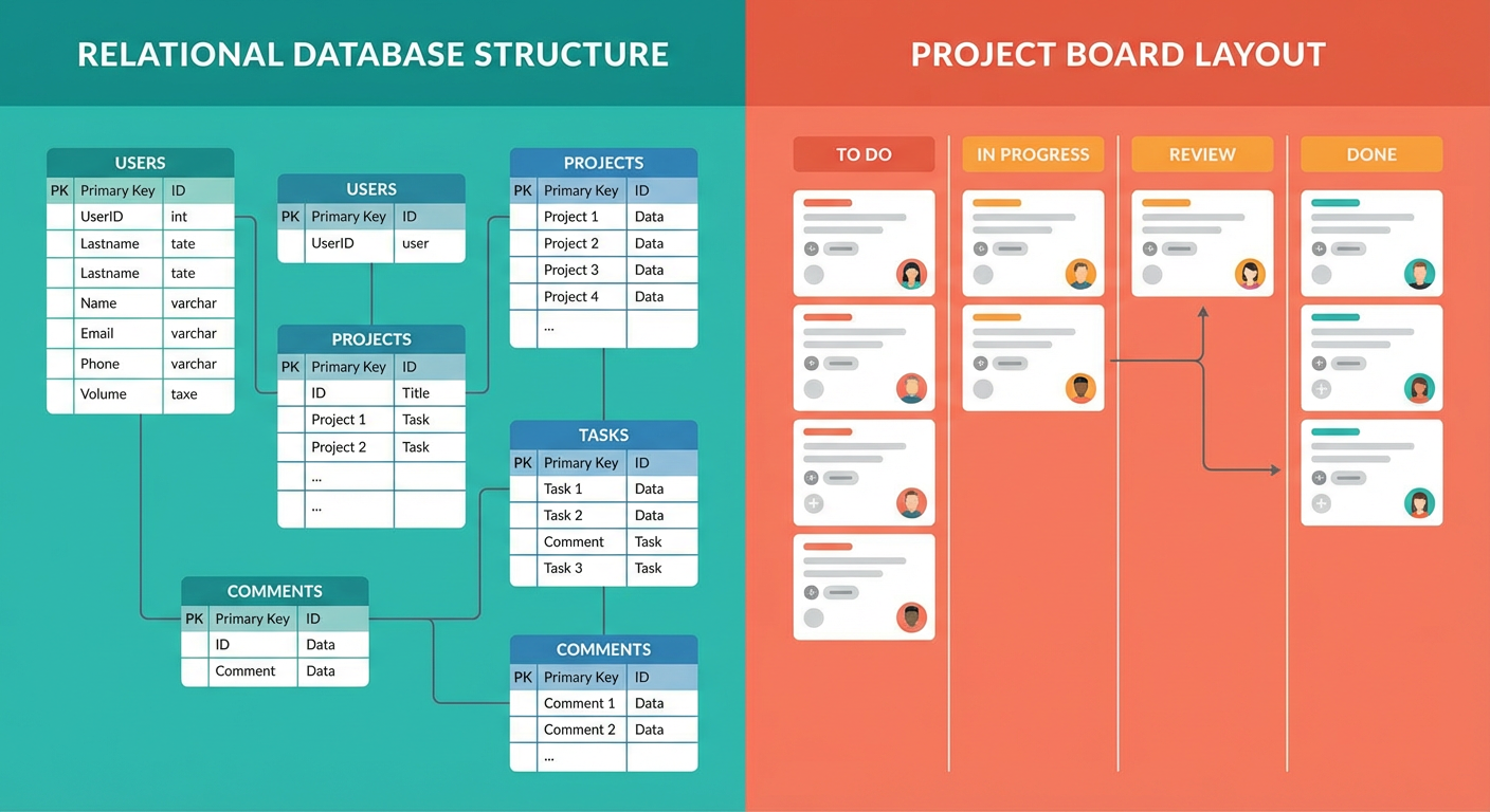 The issue comes when you try to use Monday.com as a database. And Monday.com encourages this. Their marketing talks about "Monday DB" and database-like features. They have formula columns, lookup columns, and the ability to connect boards. But the underlying model is still items-on-a-board, not records-in-a-table. The distinction matters.
